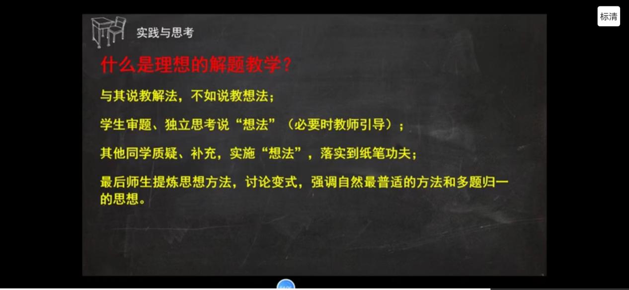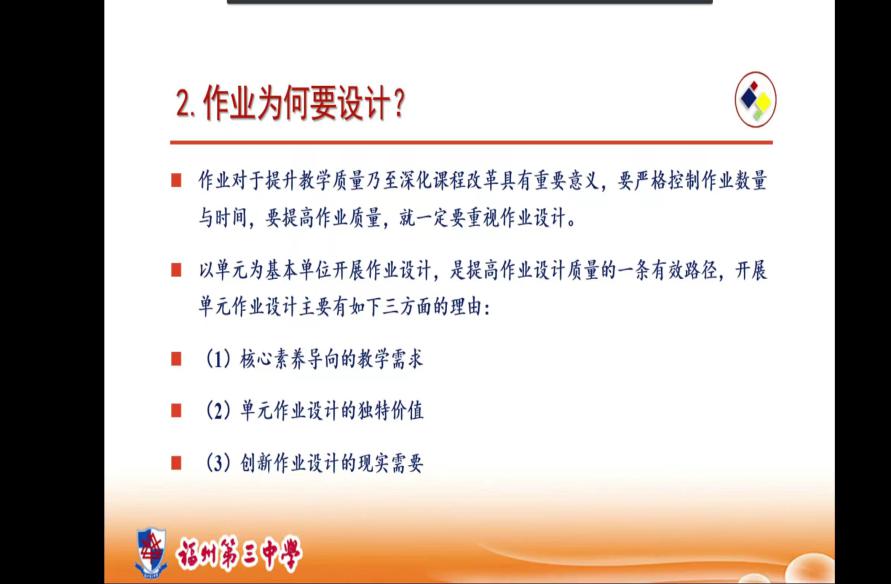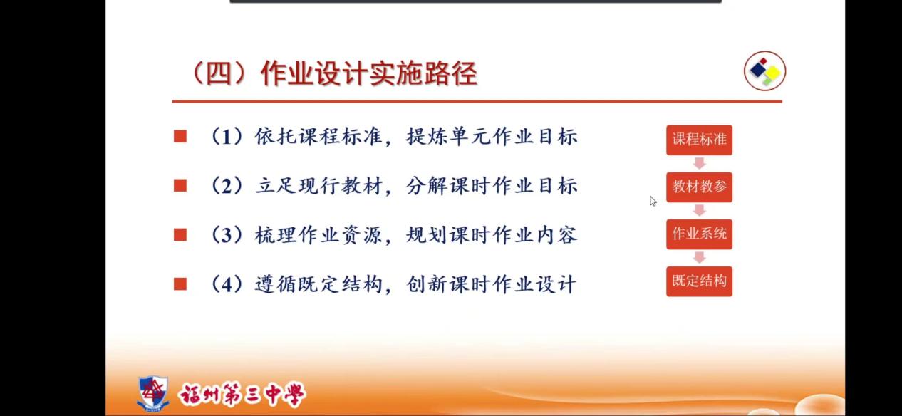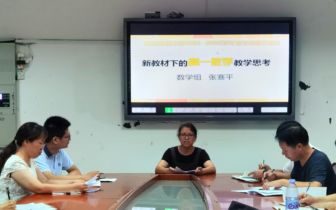发表时间:2022-04-13 11:21 高中数学新课程的实践与思考——数学组主题教研活动 为顺利实施高中课程改革,进一步顺利平稳的推进高中新教材的使用,2021年9月8日我校数学组开展了《高中数学新课程的实践与思考》的主题教研活动。 为深化课堂教学改革,提高作业设计质量,首先由教研组长张华英老师组织大家通过钉钉学习福州三中黄炳锋老师的《新课程视域下的数学单元作业设计》炳锋老师详细阐述了如何设计基础作业,如何设计一些适当增加探究性、实践性、综合性的作业以及作业设计的实施路径。